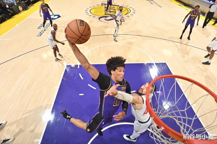 本场比赛中,湖人虽然拿下了比赛的胜利,但是球队的先发中锋贾克森-海斯(Jaxson Hayes)算是打出了最近一段时间个人的最差之战了。海斯全场出场25分59秒,投篮3中2,罚球2中1,得到了5分1篮板2助攻2盖帽的数据,还有2次失误和1次犯规,正负值更是低到了全队最低的-15。海斯在进攻端并没有什么太多的表现,受制于球权和出手次数,他也是很难在进攻端为球队提供更多的支持。海斯最大的问题还是在防守端,海斯在防守端的表现堪称灾难,他完全没有办法对对手的内线支柱伊维察-祖巴茨(Ivica Zubac)进行有效地限制,祖巴茨在场上简直是予取予求,随随便便就打爆了海斯。海斯在场上时球队的局面也是一塌糊涂的,这也能够体现在他极低的正负值上。
